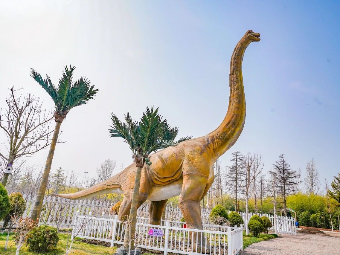 大洋藝術(shù)為園區(qū)定制了20余只1:1高度復原超仿真恐龍模型。