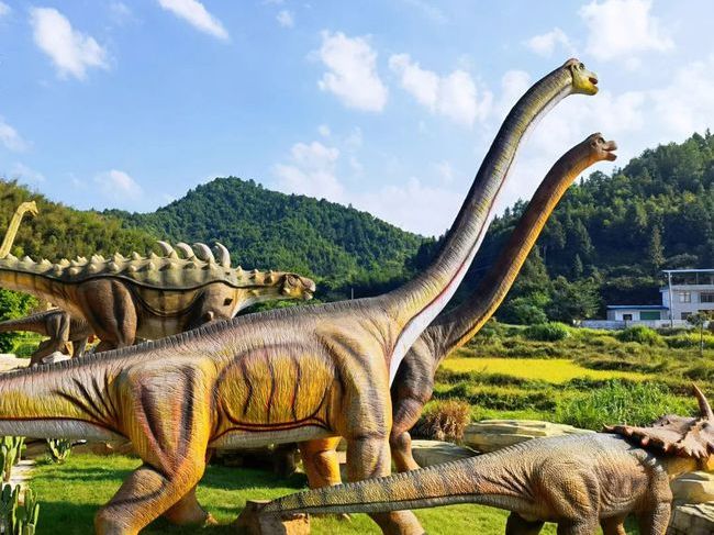 霸王龍、三角龍、劍龍、無齒翼龍、腕龍、甲龍......我們運(yùn)用現(xiàn)代科技按1:1比例仿真建造還原恐龍家族繁衍生息的場(chǎng)景。