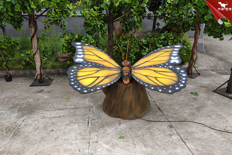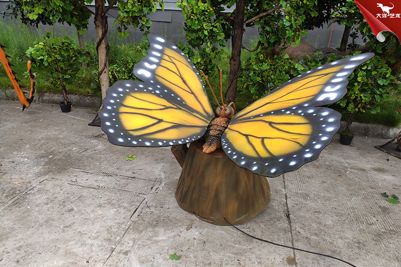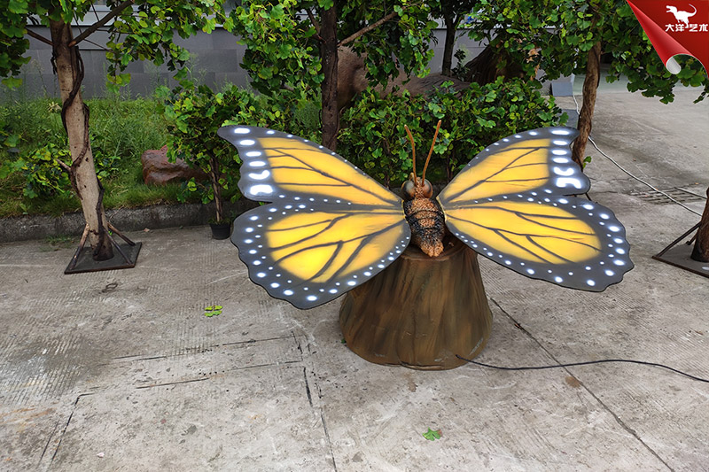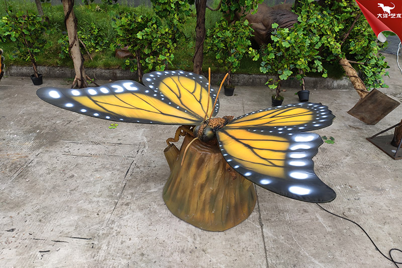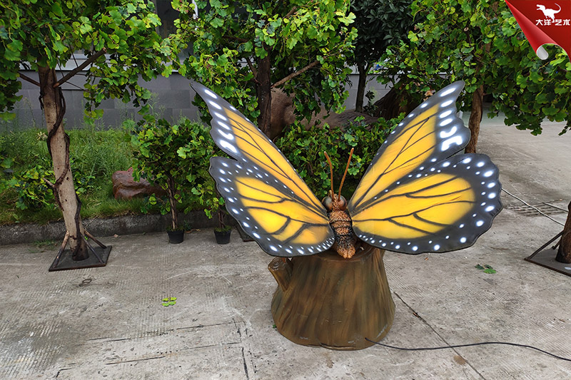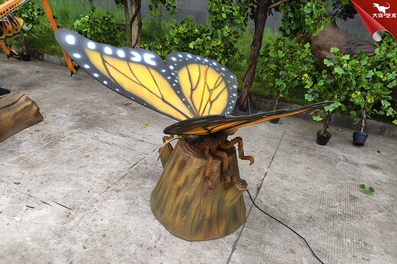 仿真蝴蝶是自貢大洋藝術(shù)有限責(zé)任公司-仿真恐龍制作工廠生產(chǎn)制作的。改仿真展品寬2米高1米左右,采用仿真恐龍技術(shù)制作,側(cè)才鮮艷、整體形象逼真。配合翅膀扇動(dòng)可發(fā)出蝴蝶飛翔的聲音。該展品主要用于動(dòng)物主題公園、商業(yè)活動(dòng)展覽、游樂(lè)場(chǎng)等場(chǎng)所!