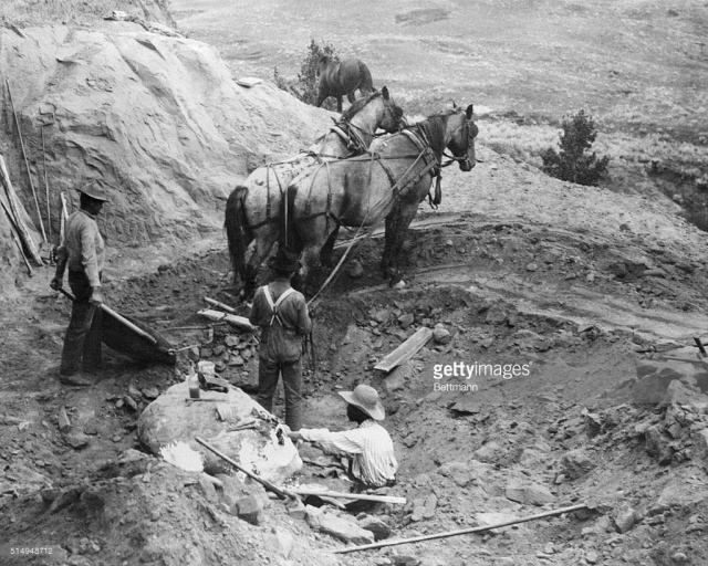 圖:第一副霸王龍化石的挖掘現(xiàn)場