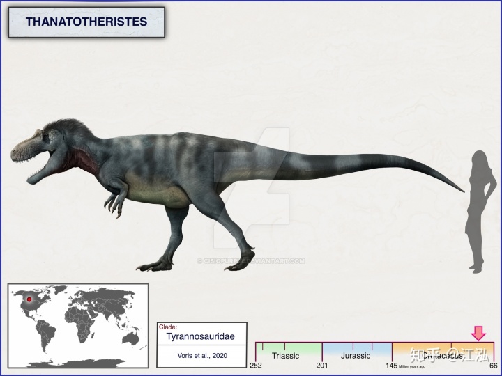 經(jīng)過了兩年的研究,沃里斯發(fā)現(xiàn)這真的是一個全新的物種!這令加拿大的古生物學家們都激動不已,因為這是50年來加拿大發(fā)現(xiàn)的第一種新暴龍科恐龍,也是加拿大發(fā)現(xiàn)的第五種暴龍科(此前發(fā)現(xiàn)了霸王龍,懼龍,艾伯塔龍蛇發(fā)女怪龍)。“世界上很少能有國家一次性擁有五種暴龍科,這足夠讓我們吹好一陣子了!”皇家泰勒爾古生物學博物館的恐龍古生態(tài)學館長弗朗索瓦·塞里恩(FrancoisTherrien)非常自豪的說到。