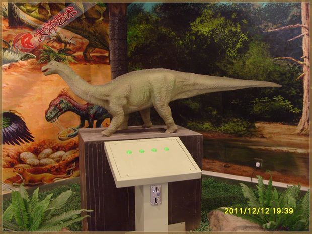 動(dòng) 作: 投幣后觀眾可操作鍵盤(pán),指揮恐龍張嘴叫聲、頭左右、頸上下、前肢擺動(dòng)、尾左右擺動(dòng)。
