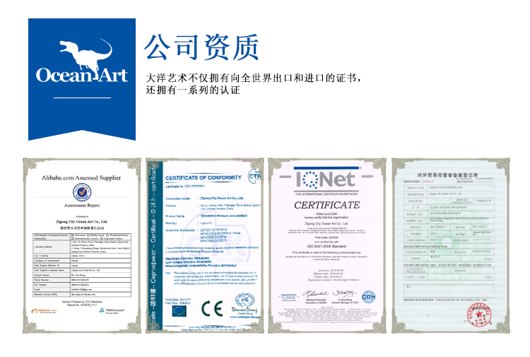 備注: 我們所制作的仿真恐龍展品和骨架模型展品被中國科學(xué)院古脊椎所鑒定為“優(yōu)秀科研作品”被譽為”侏羅紀“的在現(xiàn)者。我們將秉承客戶至上的理念,為客戶設(shè)計和制造恐龍展品,并根據(jù)客戶的要求提供3年以上質(zhì)量保證,并長期為客戶提供培訓(xùn)安裝維修人員和配件等售后服務(wù),為顧客解除了恐龍展品長期使用展覽的后顧之憂。