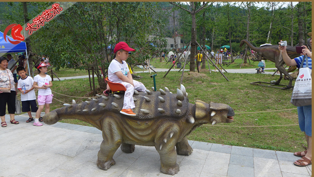 動(dòng) 作:投幣后觀眾,張嘴叫聲、頭左右、四肢走動(dòng)(方向盤控制)、尾左右擺動(dòng)。背上可騎坐小孩隨龍走動(dòng)娛樂(lè)
