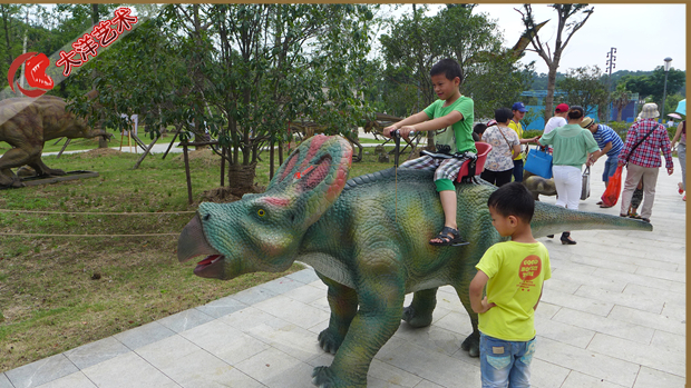 動(dòng) 作:投幣后觀眾,張嘴叫聲、頭左右、四肢走動(dòng)(方向盤控制)、尾左右擺動(dòng)。背上可騎坐小孩隨龍走動(dòng)娛樂
