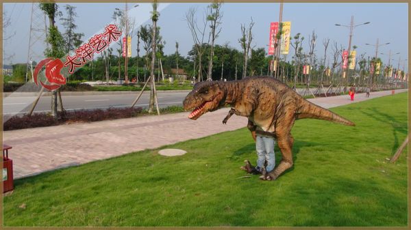 動(dòng) 作:人穿在恐龍身體里面,控制恐龍動(dòng)作